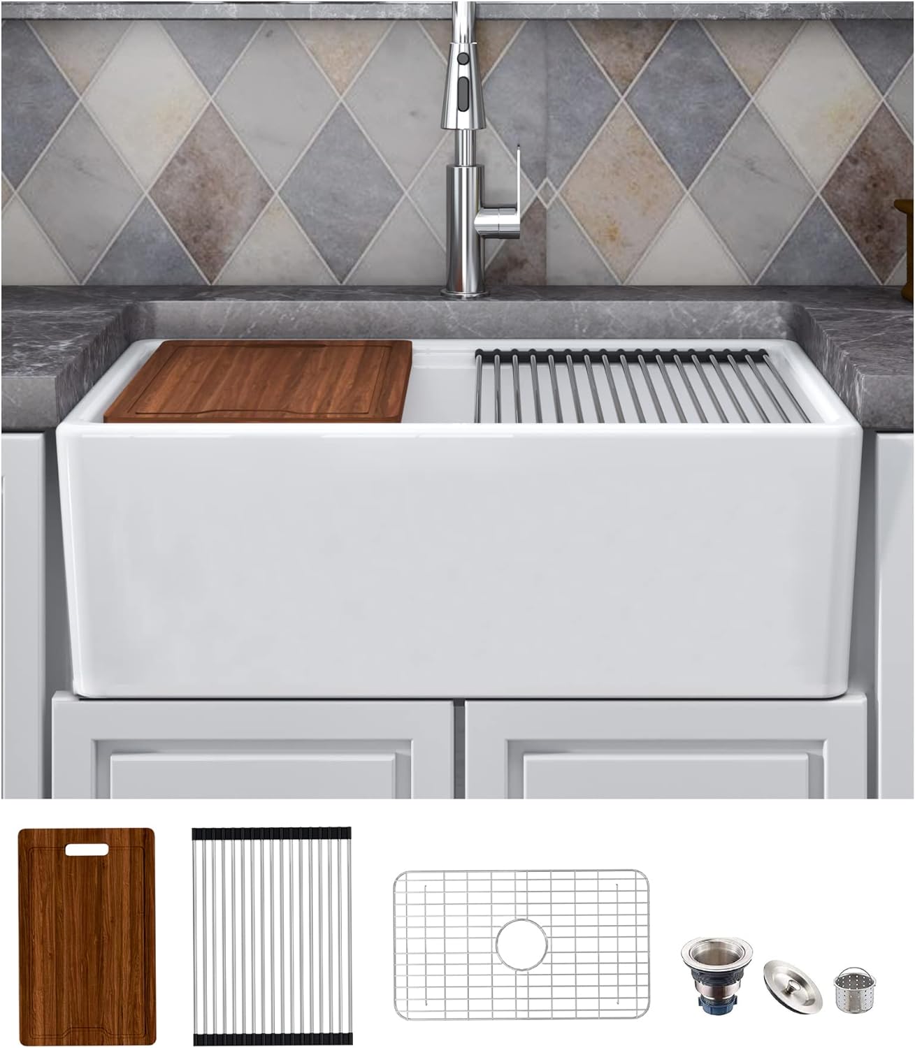 Incluye: contracanasta, colador, push, rejilla para secado, rejilla para lavar verduras y tabla de madera para picado.