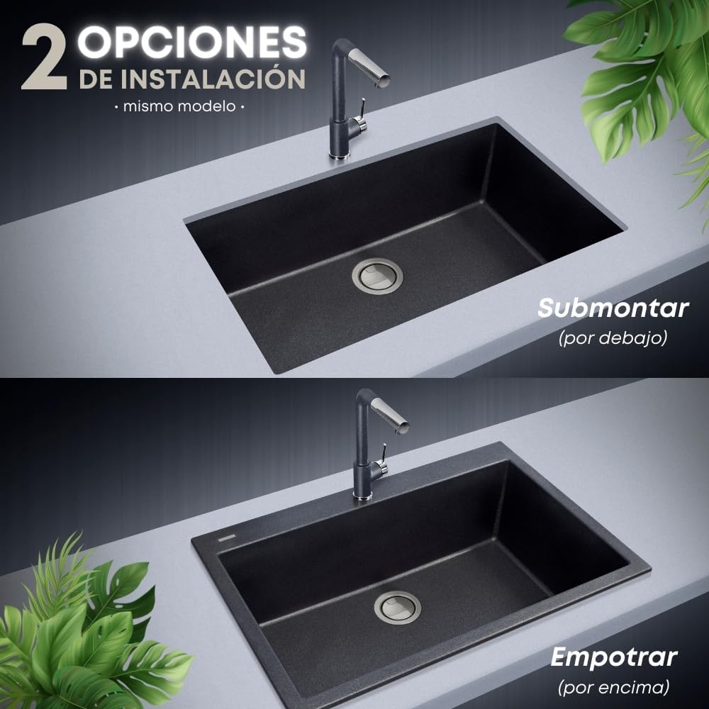 Cuarzo y acrílico de alta resistencia.