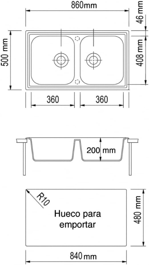 86 cms x 50 cms x 20 cms altura