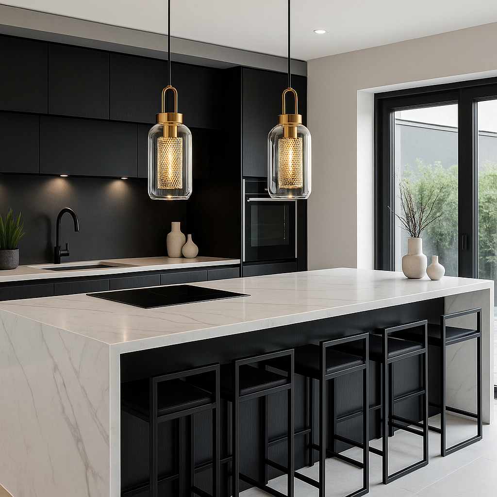 Latón cepillado y vidrio